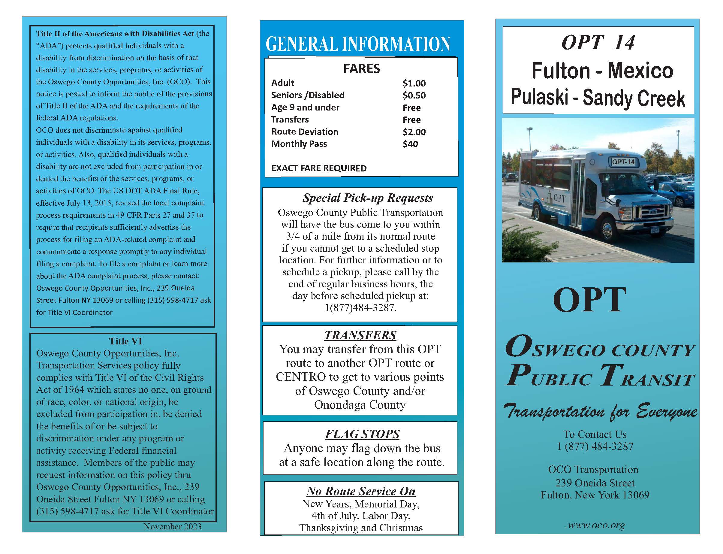 Link to Printable OPT 14 Route Flyer (Updated Nov 2023)